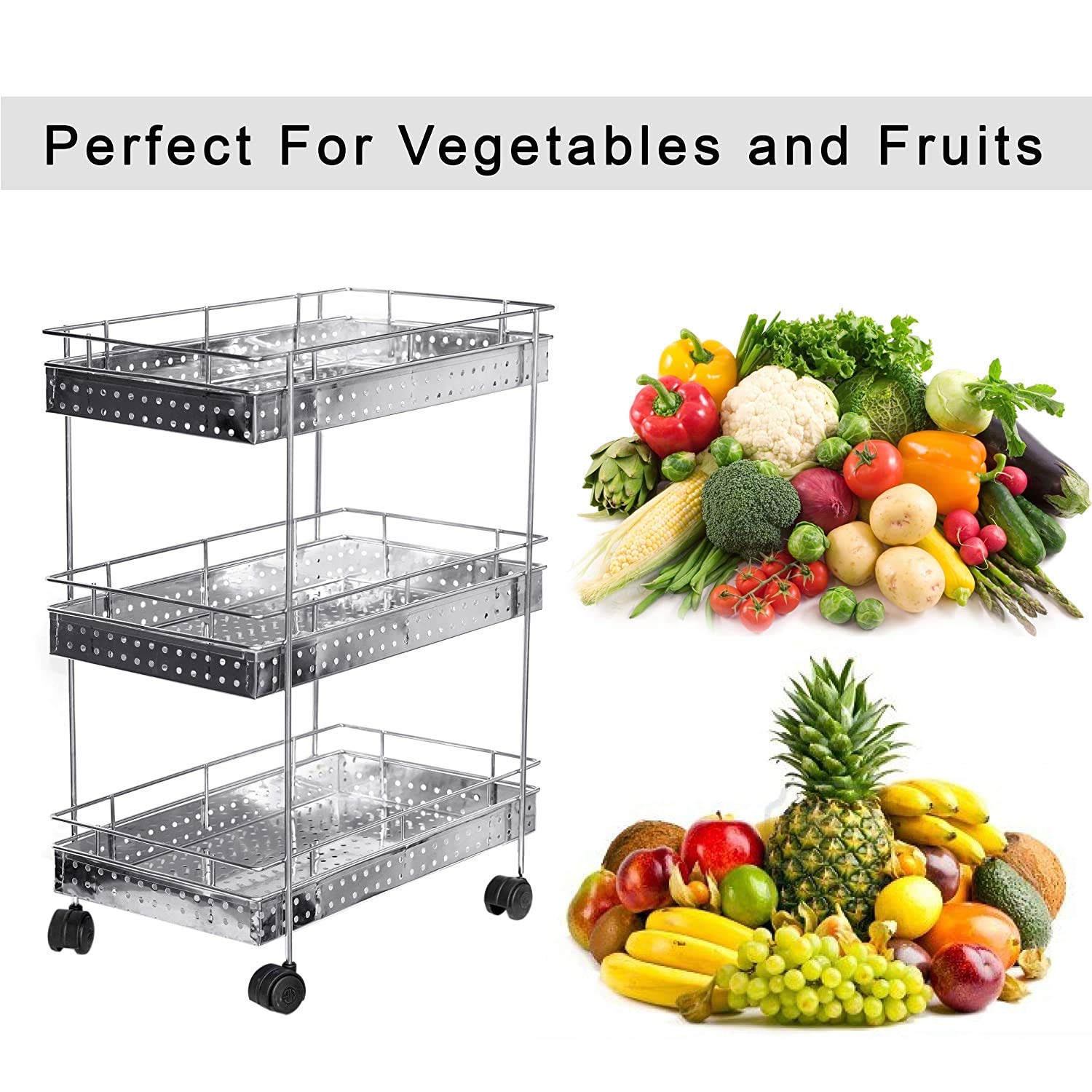 3 Layer Stainless Steel Kitchen Trolley for Versatile Storage Solutions